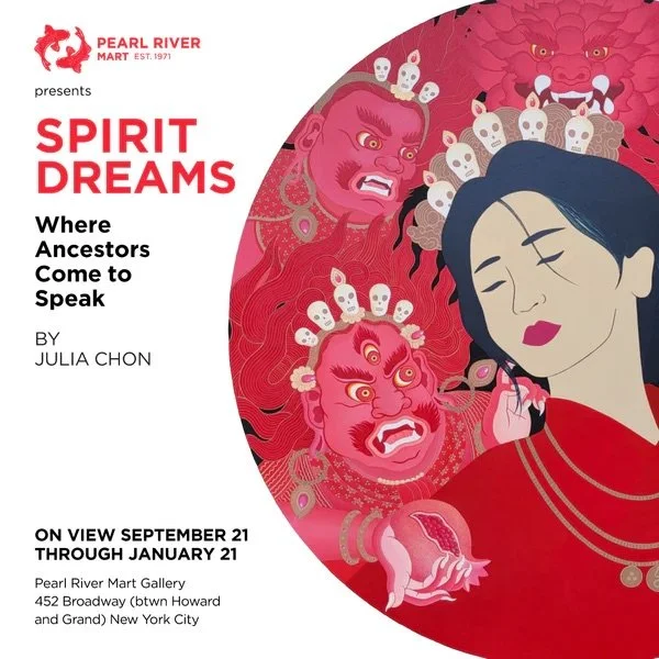 Spirit Dreams explores the interweaving of ancestry and diaspora, the past and the present, traditions and contemporary life. In the way that the mudang acts as a bridge between the spiritual and mundane, Korean American artist Julia Cho’s work connects generations across space and time.