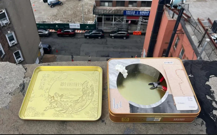 We all know what happens to mooncake tins after the mooncakes are eaten. They become treasure boxes of small things, memories, and a preserver of wishes. What can take shape in the space of a mooncake tin? In our annual open call group show, Think!Chinatown asked our community of artists to use mooncake tins as the starting point for new works of art dedicated to the spirit of the mooncake tin.