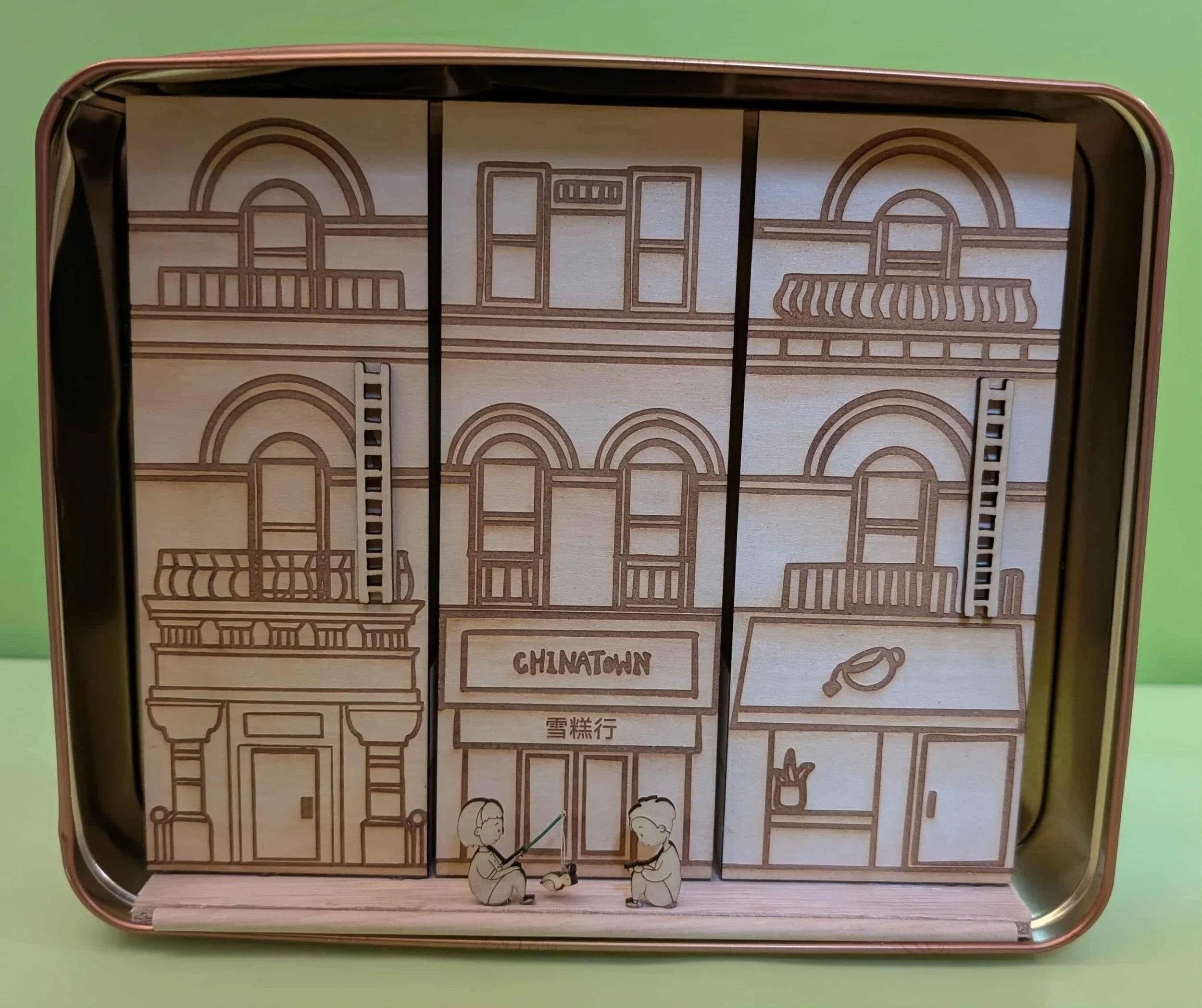 This piece features a snapshot that captures the essence and wonders of Manhattan Chinatown. Mid-Autumn Festival was one of my favorite holidays as a child and it never seems to lose its magic. This was designed with original illustrations and made with laser cutting and engraving.